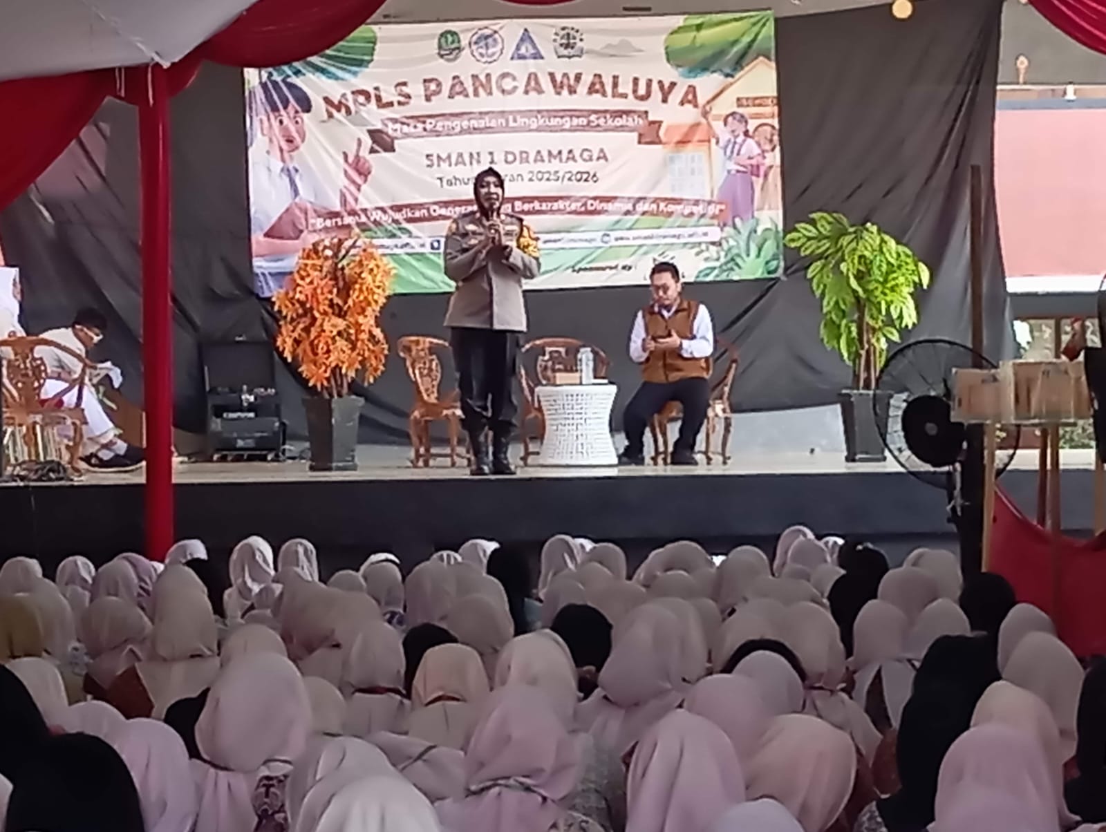 Bogor – Kapolsek Dramaga Polres Bogor, Iptu Desi Triana, S.H M.H memberikan Materi Dalam Giat MPLS SMAN 1 DRAMAGA Kecamatan Dramaga, Sampaikan Bahaya Penyalahgunaan Narkoba Serta Kenakalan Remaja/Pelajar Wajib Di Hindari, Rabu tgl 16 Juli 2025, mulai pukul 08.20 wib sampai selesai.