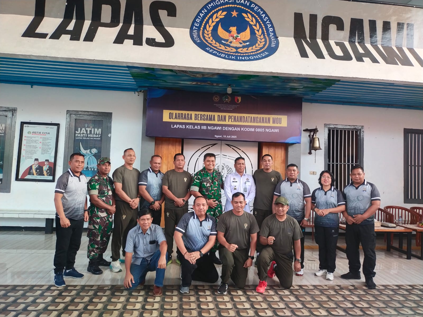 NGAWI, BUSERJATIM.COM GROUP – Dalam upaya mempererat sinergitas antar lembaga serta mendukung kelancaran program pemerintah, Komando Distrik Militer (Kodim) 0805/Ngawi bersama Lembaga Pemasyarakatan (Lapas) Kelas IIB Ngawi melaksanakan kegiatan olahraga bersama yang dirangkaikan dengan penandatanganan Nota Kesepahaman (Mou), Jumat (18/7/2025).