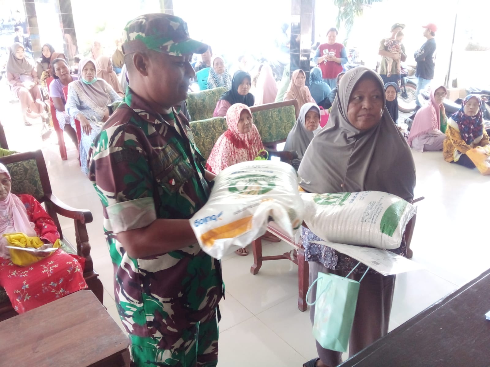 Kegiatan penyaluran bantuan ini turut dipantau langsung oleh anggota Koramil 1713/Ligung guna memastikan proses pendistribusian berjalan tertib, tepat sasaran, dan lancar.