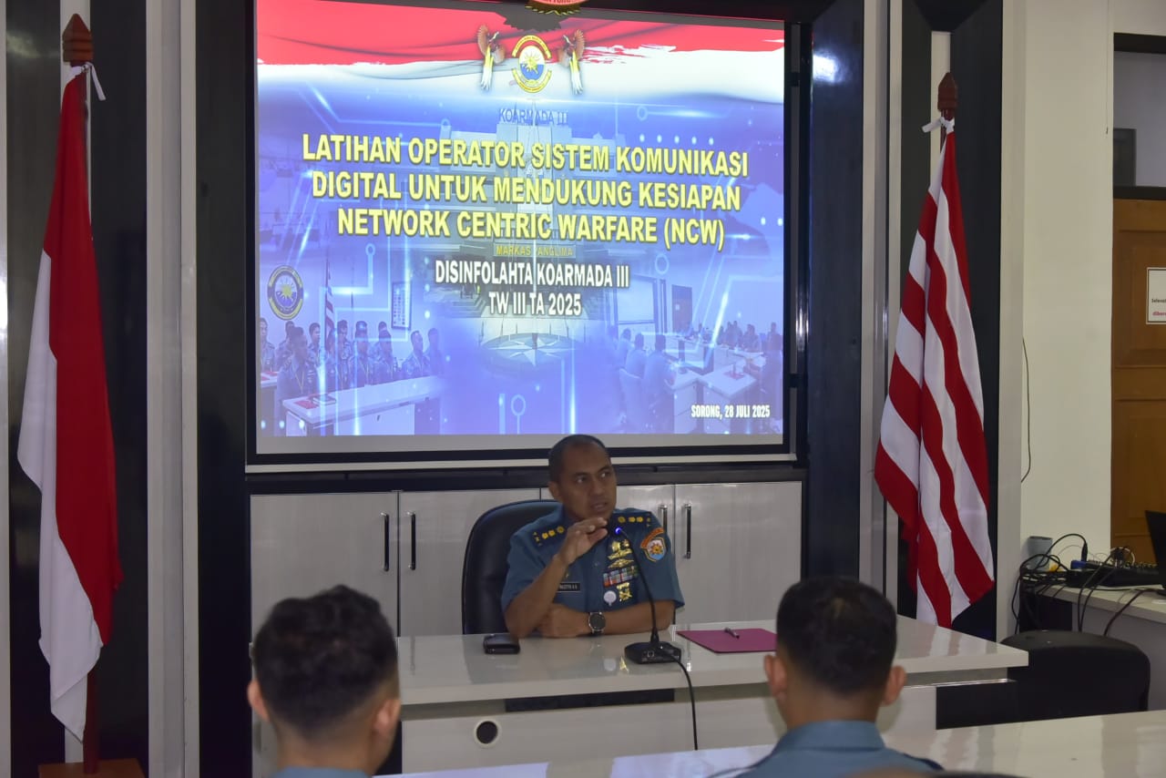KATAPOP KABUPATEN SORONG, BUSERJATIM.COM GROUP (28 Juli 2025) — Dalam rangka meningkatkan profesionalisme dan kesiapan personel menghadapi tuntutan operasi modern, Dinas Informasi dan Pengolahan Data (Disinfolahta) Komando Armada (Koarmada) III menggelar Latihan Operator Sistem Komunikasi Digital Network Centric Warfare, bertempat di Ruang Rapat Dinas Komunikasi dan Elektronika (Diskomlek) Mako Koarmada III, Senin (28/7).