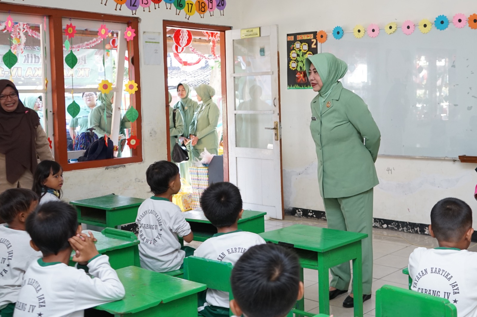 Madiun, Buserjatim.com group- Ketua Persit KCK Koorcab Rem 081 PD V/Brawijaya, Ny. Frieda Untoro menyambangi TK Kartika IV-15 dan TK Kartika IV-17, Jumat (1/8/2025). Keduanya berlokasi di Kota Madiun.