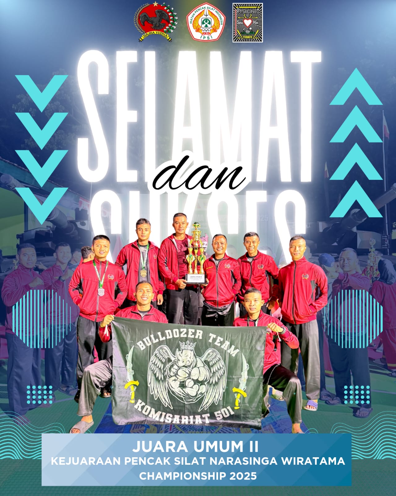 Para Pesilat Yonif 501 /Bajra Yudha kembali Menorehkan Prestasi dengan Meraih JUARA UMUM 2 Katagori Dewasa dalam Event Pencak Silat Narasinga Wiratama CHAMPIONSHIP 2025 yang diselenggarakan di Batalyon Kavaleri 8/NSW Pasuruan pada tanggal 8 Agustus 2025.