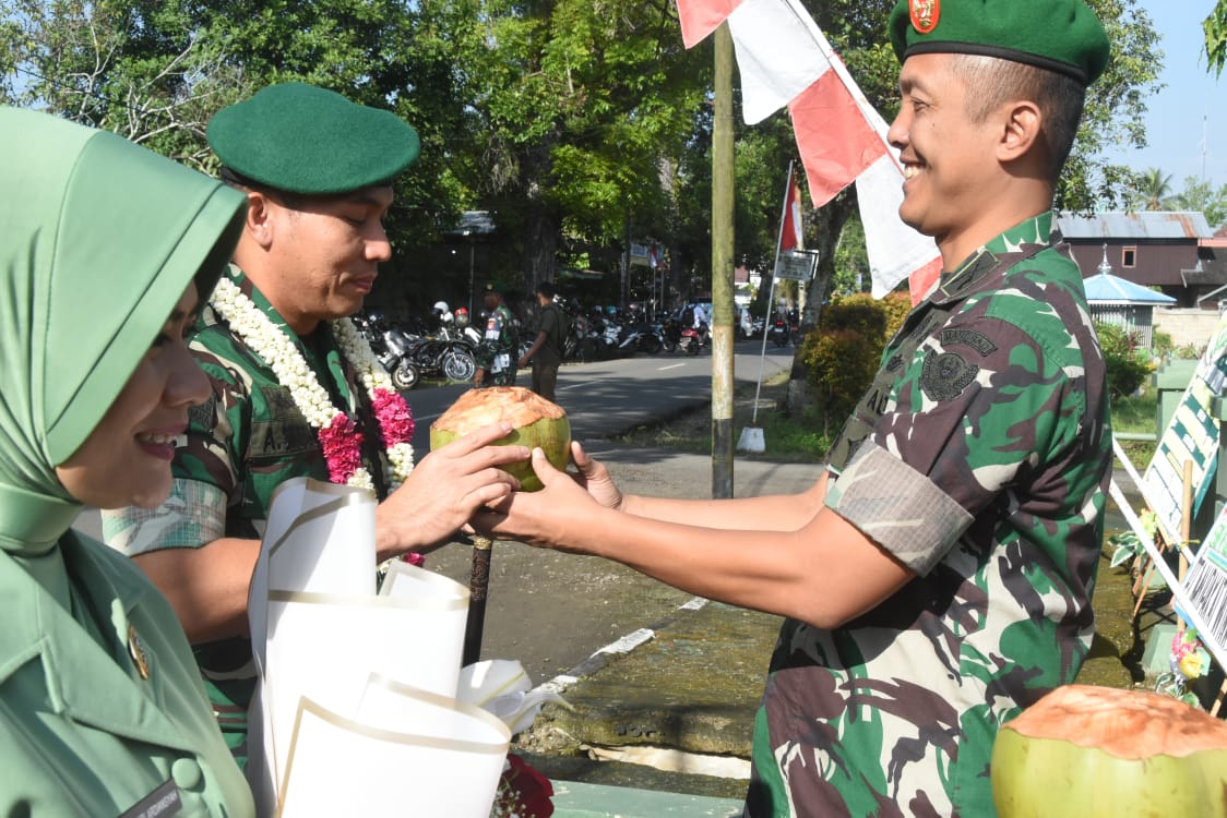 Penyambutan dipimpin langsung oleh pejabat Dandim yang lama yaitu Letkol Inf Fery Perbawa, S.Hub.Int.,M.Han bersama istri Ny. Maulida Fery Perbawa dengan pengalungan manik-manik dan pemberian handbuket serta minum air kelapa sebagai ucapan selamat datang kepada Letkol Inf Ardiansyah Okta Putra Siregar, S.I.P , bersama istri Ny Hapsari Ardiansyah O.P Siregar, sebelum memasuki ruangan kerjanya.