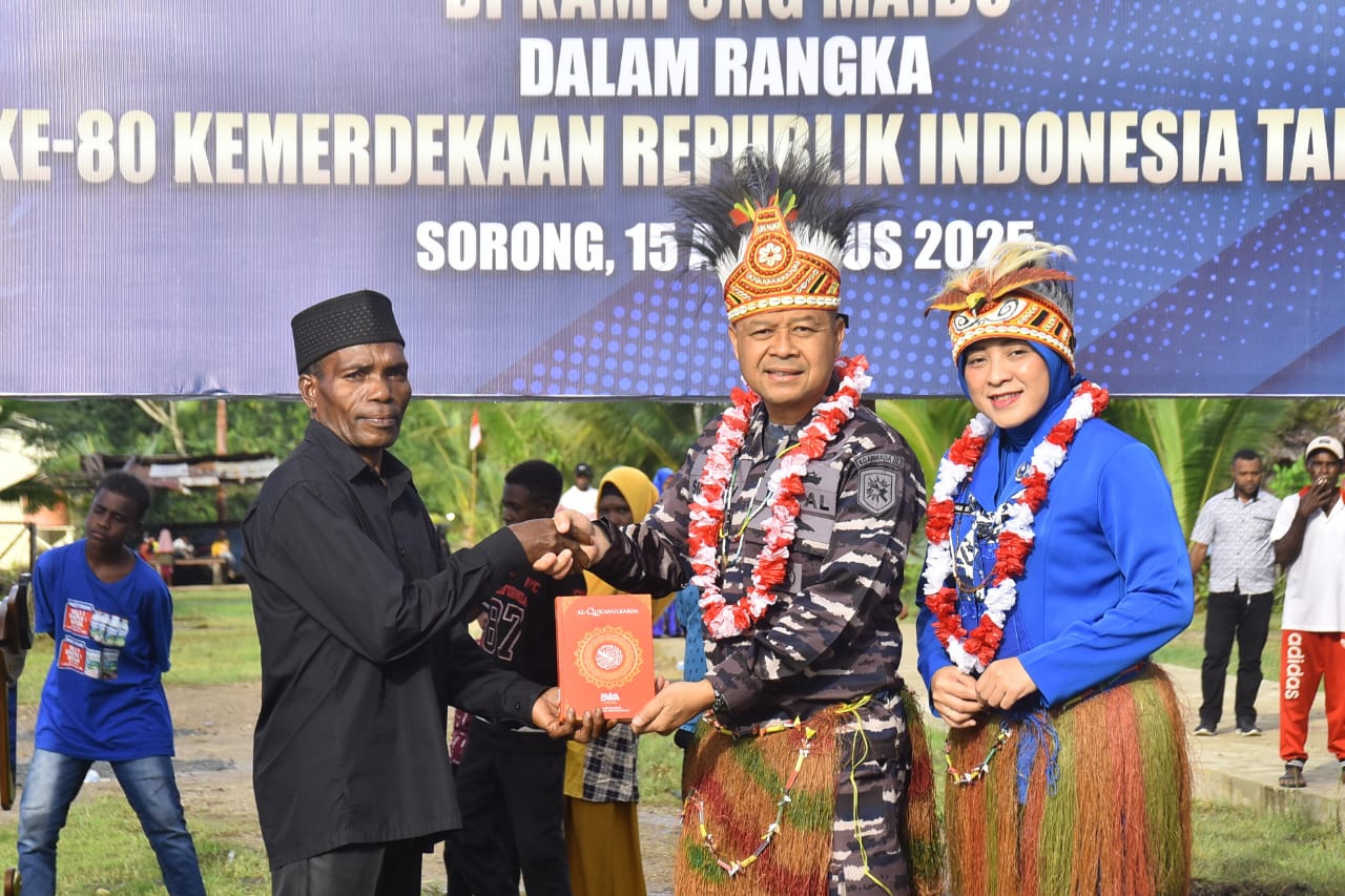 KABUPATEN SORONG, BUSERJATIM.COM GROUP / 15 Agustus 2025 — Dalam rangka memperingati Hari Ulang Tahun ke-80 Kemerdekaan Republik Indonesia, Komando Armada (Koarmada) III bersama Pemerintah Kabupaten Sorong menggelar bakti sosial dan bakti kesehatan di halaman Masjid Al Jabal, Kampung Maibo, Distrik Aimas, Papua Barat Daya, Jumat (15/8).
