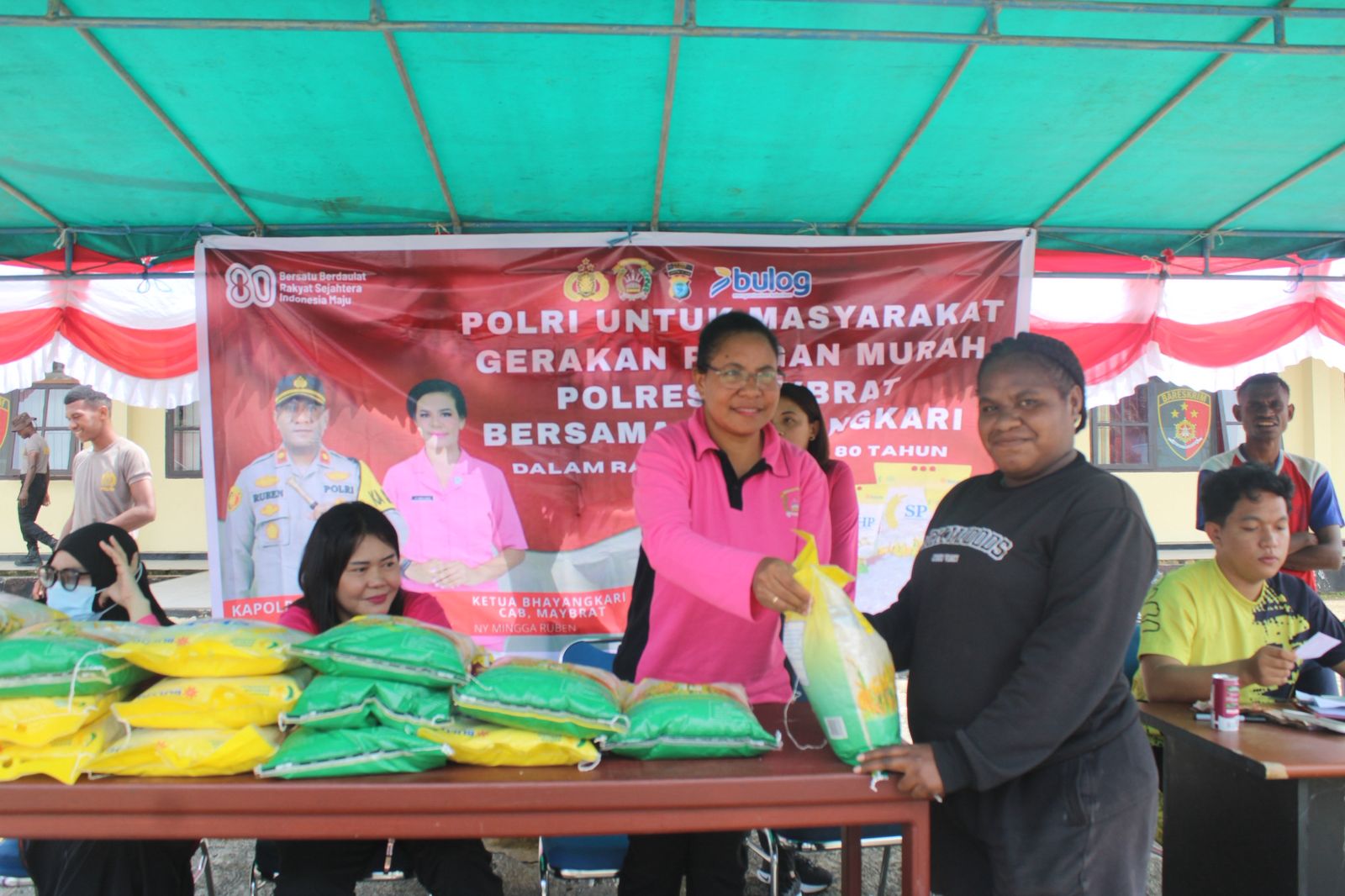 MAYBRAT, BUSERJATIM.COM GROUP – Dalam rangka menyemarakkan peringatan Hari Ulang Tahun Kemerdekaan Republik Indonesia ke-80 tahun 2025, Polres Maybrat bersama Bhayangkari Cabang Maybrat menggelar Gerakan Pangan Murah yang berlangsung di halaman Mako Polres Maybrat, Jumat (15/08/25).