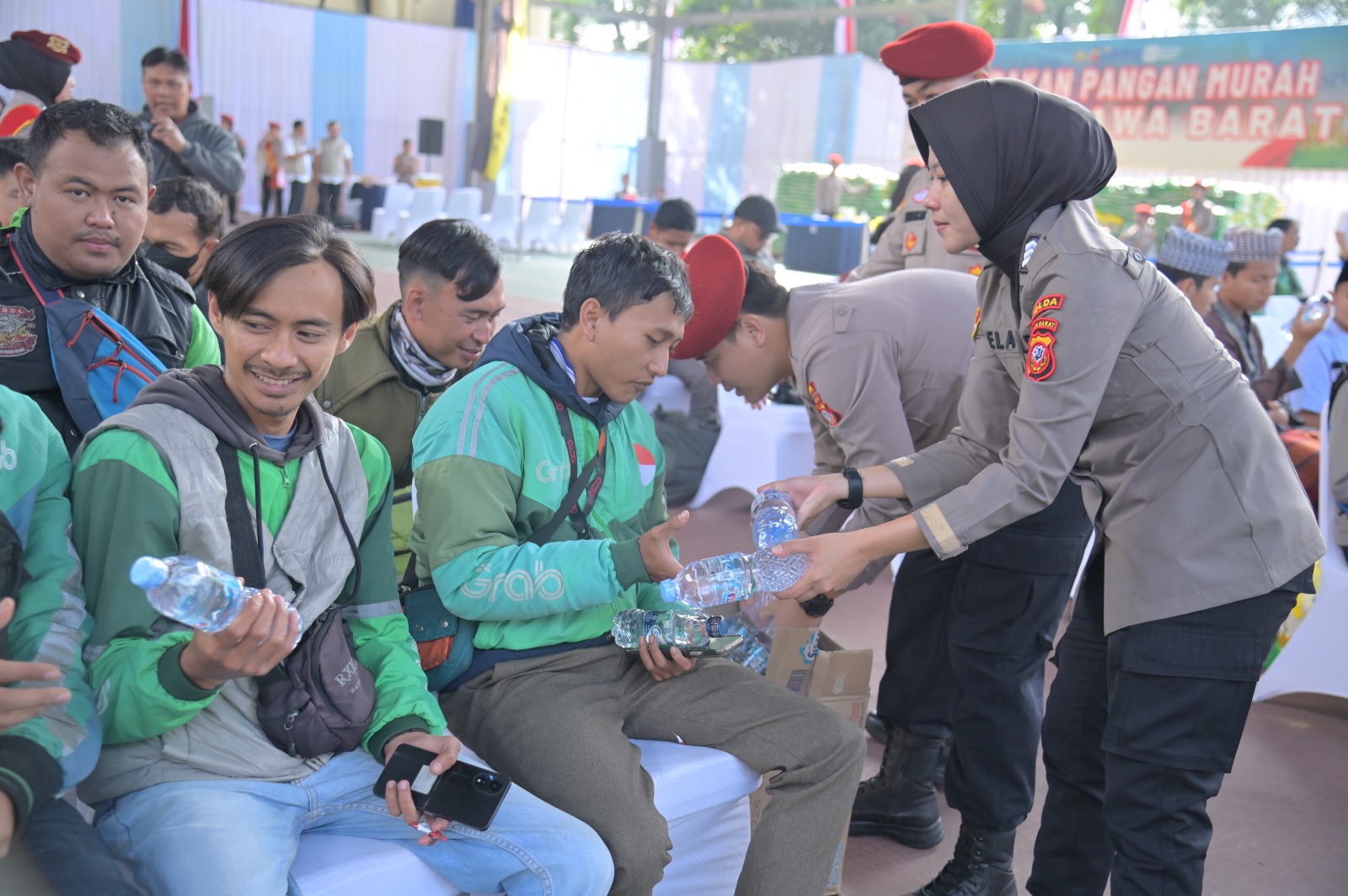 Dalam rangka memperingati HUT ke-80 Kemerdekaan RI, Polda Jawa Barat menggelar Gerakan Pangan Murah yang menyediakan sembako di bawah harga pasar bagi masyarakat, termasuk komunitas ojek online (ojol). Program ini disambut antusias oleh para pengemudi yang merasakan langsung manfaatnya. Jumat 15 Agustus 2025