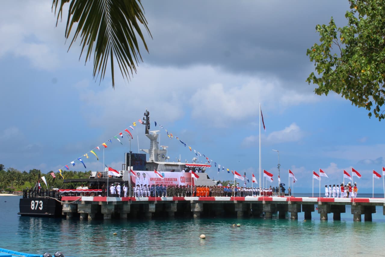 BIAK NUMFOR, BUSERJATIM.COM GROUP – KRI Matabongsang-873 unsur Bawah Kendali Operasi (BKO) Guskamla Koarmada III, turut serta mendukung pelaksanaan Upacara Hari Ulang Tahun (HUT) ke-80 Kemerdekaan Republik Indonesia di Dermaga Mbromsi, Distrik Aimando Padaido, Kabupaten Biak Numfor.
