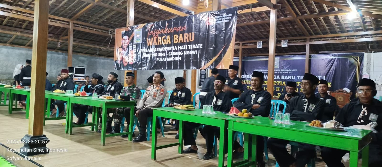 Ngawi – Persaudaraan Setia Hati Terate (PSHT) Ranting Sine, Cabang Ngawi, Pusat Madiun, menggelar acara tasyakuran warga baru tahun 2025 di Padepokan PSHT Ranting Sine, Jalan Raya Sumberejo–Sine, tepatnya di Dusun Jetak, Desa Sumberejo, Kecamatan Sine, Kabupaten Ngawi, Jawa Timur. Acara yang berlangsung mulai pukul 20.00 WIB hingga selesai ini dihadiri Kyai kondang asal Walikukun, Gus Danang Al Bento, yang menyampaikan tausiyah rohani dengan iringan hadroh Aji Kolocokro.