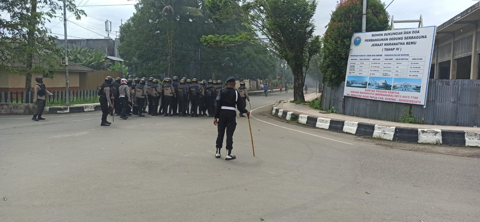 Aksi massa terjadi sekitar pukul 05.15 WIT di depan Mapolresta Sorong Kota. Kelompok pendukung para tahanan berupaya menghadang proses pemindahan dengan membakar ban dan melakukan orasi keras. Aparat keamanan yang berjaga terpaksa membubarkan massa dengan tindakan tegas dan terukur.