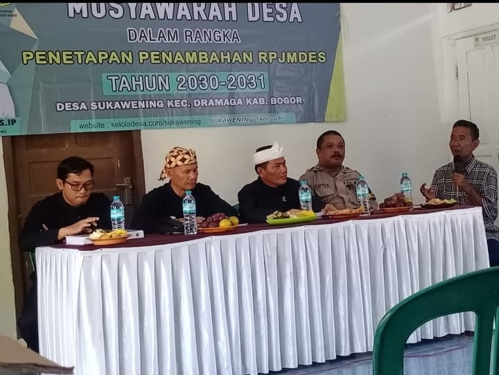 BOGOR – Bhabinkamtibmas Ds.Sukawening Dramaga pada hari Kamis tanggal 28 Agustus 2025 Jam 09.00 wib sampai pukul 12.30 wib berlokasii di Masjid Al Anwar Kp. Cimoboran RT. 01 RW 01 Desa Sukawening Kec. Dramaga Kab. Bogor. Telah berlangsung kegiatan Musdes Tentang penetapan RPJMDes tambahan 2 Tahun Desa Sukawening, yang diadakan oleh Pemdes Sukawening, Kecamatan Dramaga Kab. Bogor.