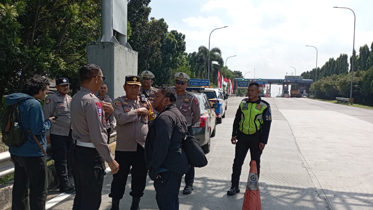 Bogor – Jajaran Polsek Citeureup, Polres Bogor, Polda Jawa Barat, melaksanakan kegiatan penyekatan di Gerbang Tol Citeureup dalam rangka mengantisipasi pergerakan massa aksi unjuk rasa menuju Jakarta, Kamis (28/08/2025). Penyekatan dipimpin langsung oleh Kapolsek Citeureup Kompol Eddy Santosa, S.Pd., M.H. beserta personelnya.