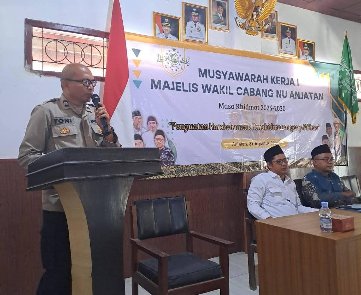 Indramayu,- Personil Polsek Anjatan jajaran Polres Indramayu Polda Jabar Menghadiri Musyawarah Kerja Majelis Wakil Cabang Nahdlatul Ulama (MWC NU) Kecamatan Anjatan.