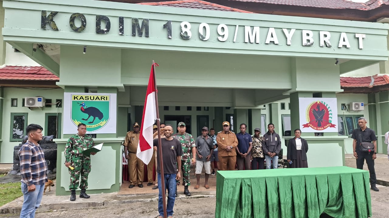 MAYBRAT, BUSERJATIM.COM GROUP (8/9/25) – Sebuah langkah monumental menuju perdamaian dan stabilitas di wilayah Papua Barat Daya terjadi hari ini, ketika dua tokoh yang sebelumnya terlibat dalam gerakan separatisme menyatakan ikrar setia kepada Negara Kesatuan Republik Indonesia (NKRI). Kegiatan ini berlangsung di Makodim 1809/Maybrat, Kampung Mefkanjim II, Distrik Ayamaru, Kabupaten Maybrat.