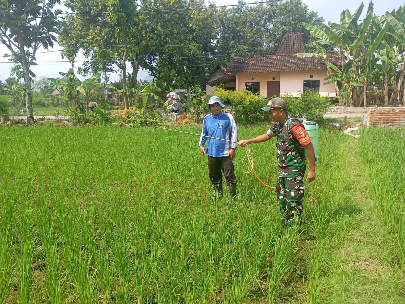 Seperti hari ini telah dilakukan Serda Achmad S anggota Koramil Tipe B 0802/10 Slahung, Kodim 0802/Ponorogo yang bertugas sebagai Babinsa Desa Plancungan yang melakukan pendampingan dan pengawalan terhadap petani yang sedang menyemprot hama tanaman padi. ” Saat ini kami bersama warga Desa Plancungan Kecamatan Slahung dalam rangka penyemprotan hama tanaman padi, ” ujar Serda Achmat S.