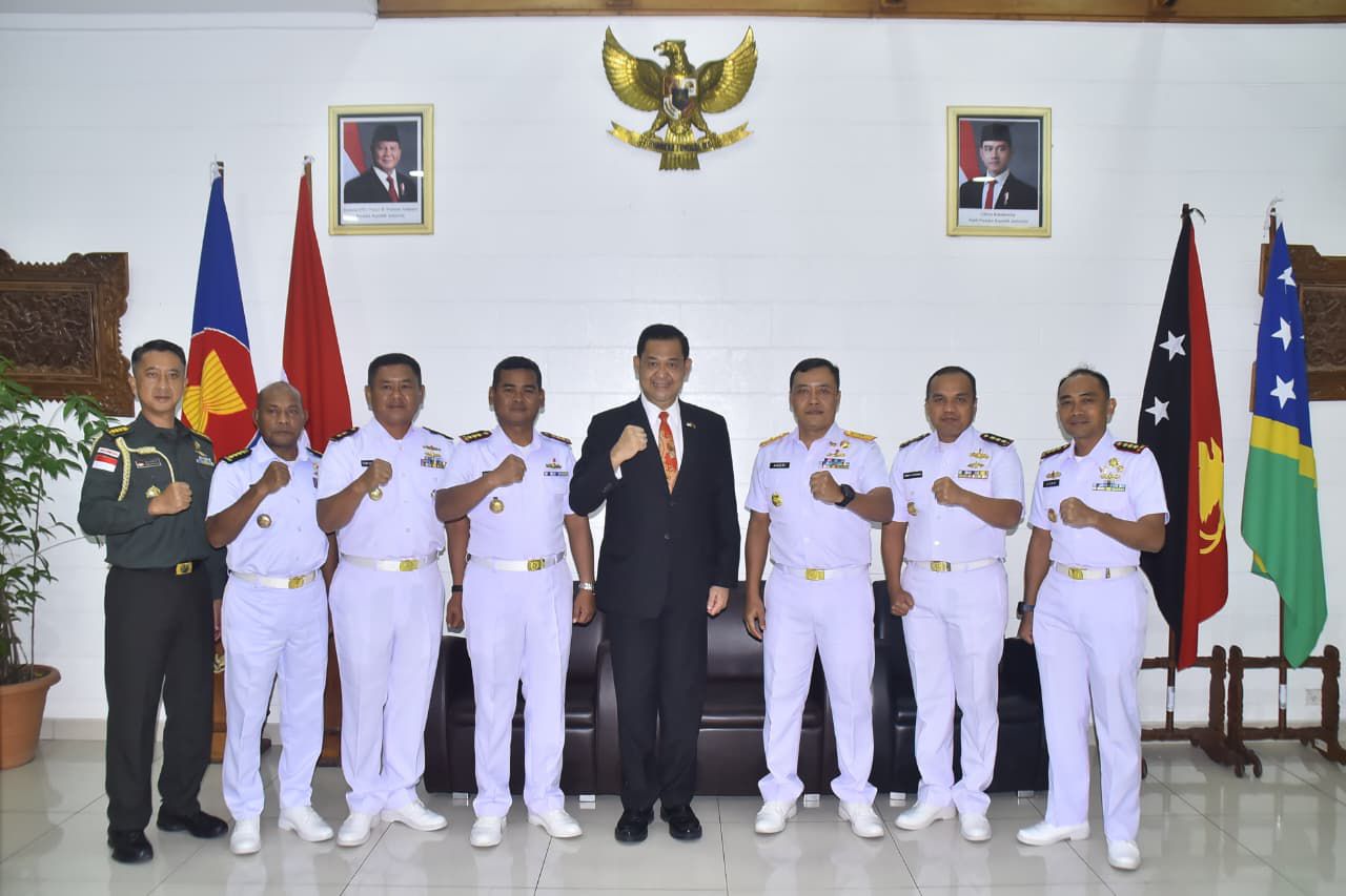 PORT MORESBY, BUSERJATIM.COM GROUP (15 September 2025) — Satuan Tugas (Satgas) Port Visit TNI Angkatan Laut tiba di Port Moresby, Papua New Guinea (PNG) dan mendapat sambutan langsung dari Duta Besar Republik Indonesia untuk Papua New Guinea, Bapak Andriana Supandi, bersama jajaran staf KBRI Port Moresby di Dermaga Lama T-Wharf, (14/9).