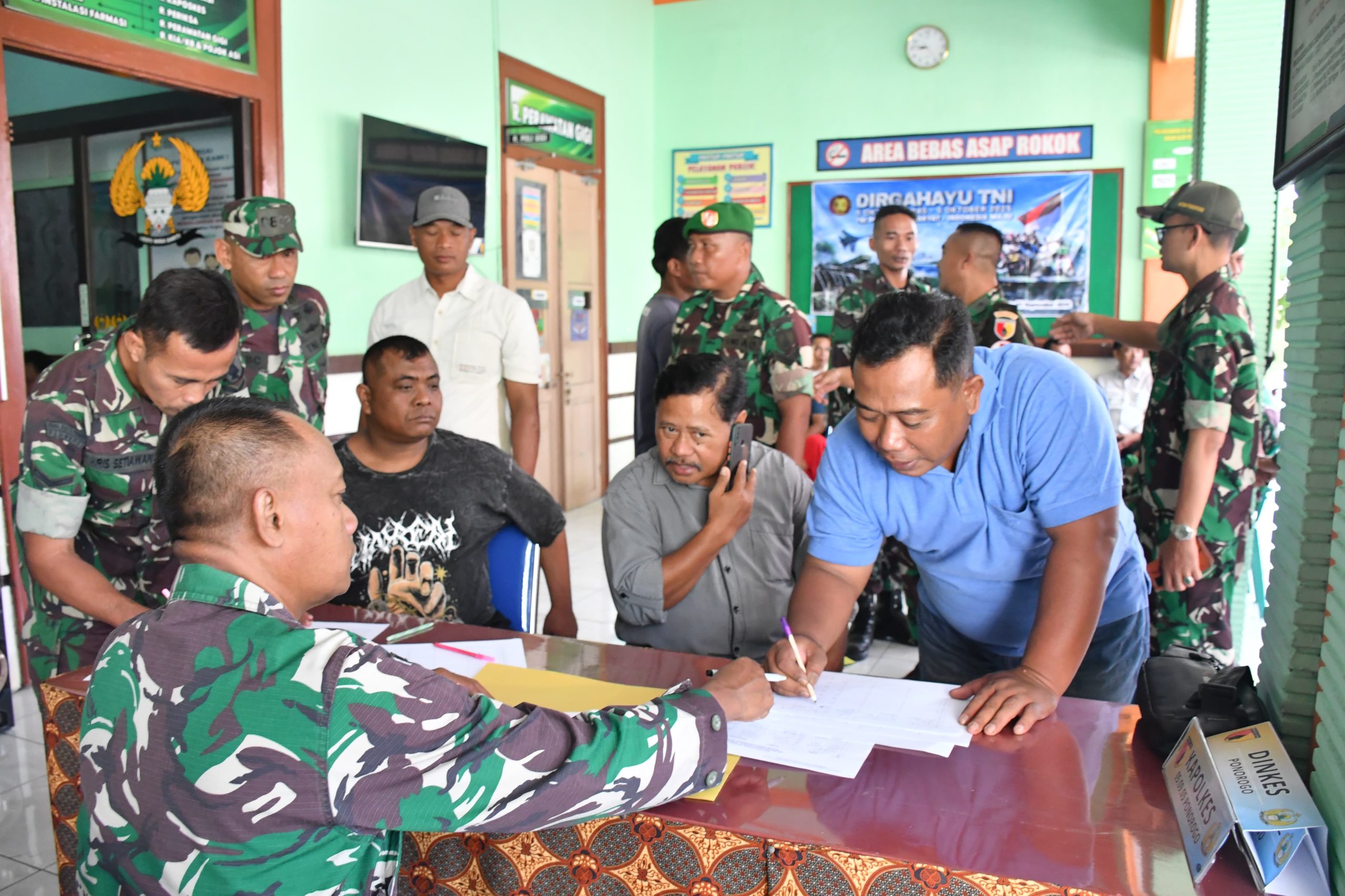 Kegiatan yang digelar di Poliklinik Kesehatan (Poskes) 05.09.05 Ponorogo Jl. Urip Sumoharjo Kabupaten Ponorogo dan dihadiri sekitar 125 orang tersebut terselenggara berkat kerjasama antara Kodim 0802/Ponorogo (Staf Teritorial Dim Ponorogo) dan Poskes 05.09.05 Ponorogo serta unsur terkait termasuk masyarakat Kabupaten Ponorogo.