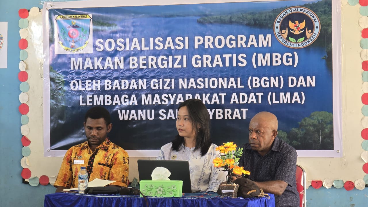 Kegiatan tersebut dipimpin langsung oleh Ketua Harian LMA Wanu Sau Maybrat, Yulian Atanai, dan dihadiri langsung oleh tim BGN Provinsi Papua Barat Daya—Elma (Kepala Regional BGN PBD), Ajeng (Wakil Regional), dan Defilson Kambu (Ketua Korwil BGN Maybrat)—sosialisasi ini bertujuan untuk membangun pemahaman bersama mengenai pentingnya program MBG dalam memperbaiki status gizi masyarakat, terutama anak-anak sekolah, ibu hamil, balita, dan lansia.