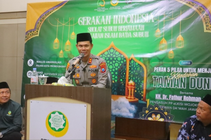 Otoritas.id | Probolinggo – Polres Probolinggo Kota bersama dengan DDII (Dewan Dakwa Islamiyah Indonesia) Kota Probolinggo, melaksanakan kegiatan Sholat subuh berjamaah dan Kuliah subuh di masjid Amanullah, Minggu (28/09/25) pagi.