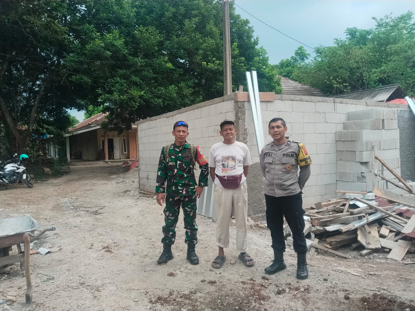 Sinergi TNI-Polri, Bhabinkamtibmas Polsek Cileungsi Polres Bogor dan Babinsa  Sambang Lokasi Pembangunan Dapur Makan Bergizi Gratis