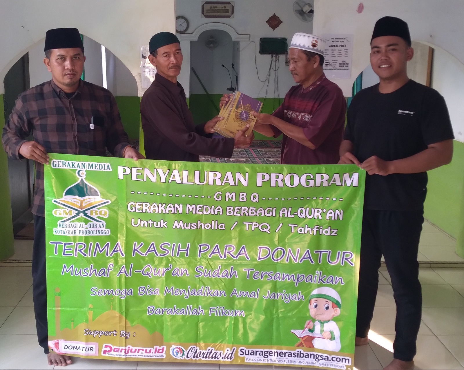 Sebagai Informasi, Komunitas GMBQ selain didukung oleh Donatur sebagai Pewakif, Komunitas tersebut juga didukung oleh Mitra Media Online yang berada di biro Probolinggo diantaranya Penjuru.id, Otoritas.id, PPNews.id, SGB-News.id, Reportaseindonesianews.com, Suaragenerasibangsa.com serta Garudaxpose.com. (Fahrul)