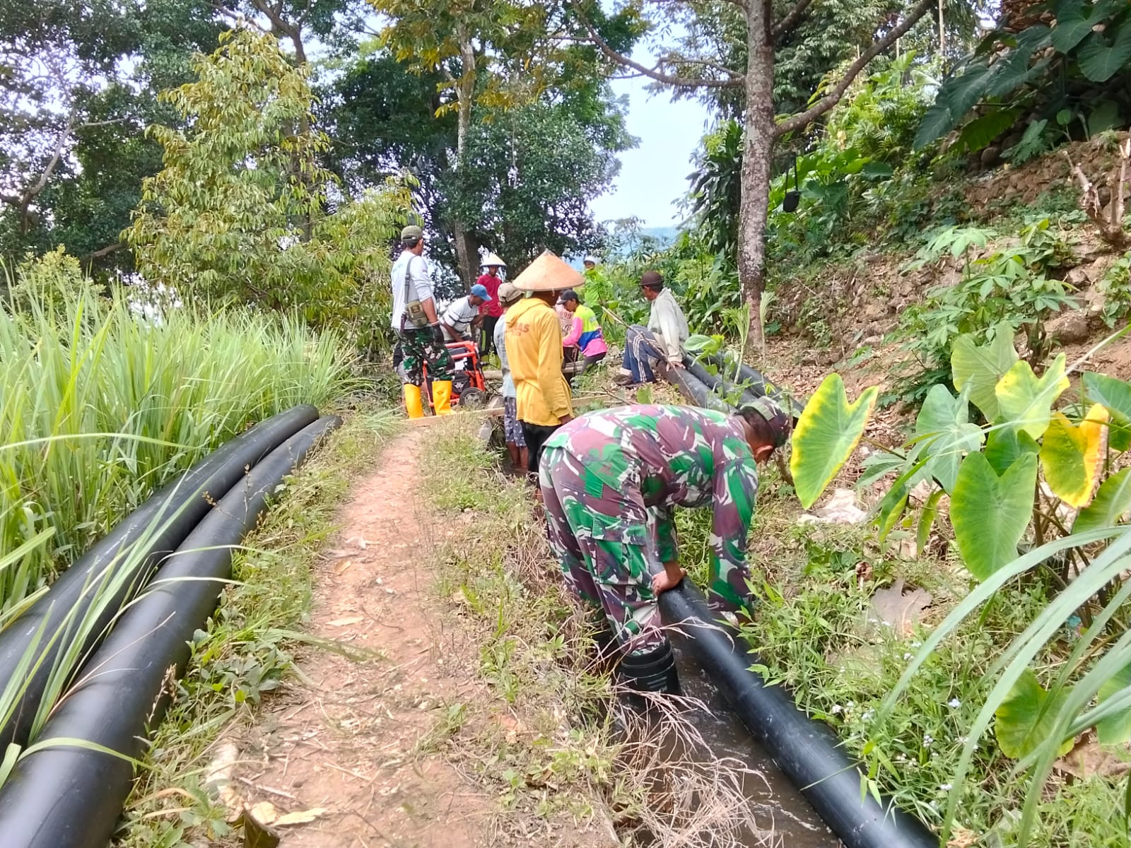 NGAWI, BUSERJATIM.COM GROUP – Dalam rangka mendukung program TNI AD Manunggal Air, Sertu Marzuki, Babinsa Koramil 08/Jogorogo,Kodim 0805/Ngawi melaksanakan pendampingan kegiatan pipanisasi di Desa Jaten, Kecamatan Jogorogo, Kabupaten Ngawi. Minggu (19/10/2025).