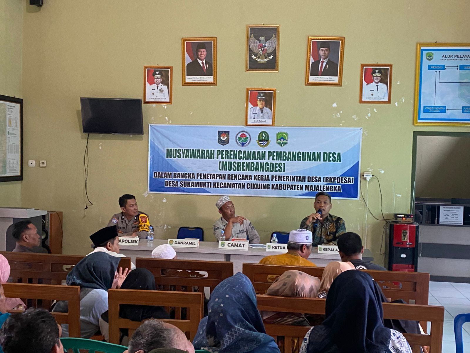 Majalengka – Bhabinkamtibmas Polsek Cikijing Polres Majalengka Polda Jabar Aiptu Usin menghadiri pelaksanaan Musrenbangdes dalam rangka penetapan RKPDes tahun Anggaran 2026 di Aula Desa Sukamukti, Kecamatan Cikijing, Kabupaten Majalengka, Sabtu (25/10/2025).