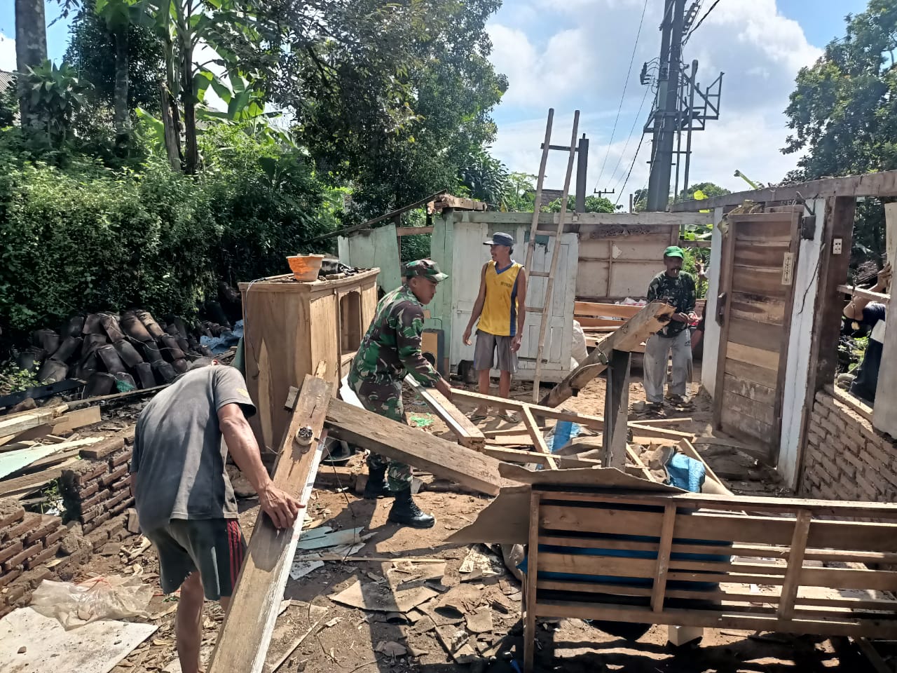NGAWI, BUSERJATIM.COM GROUP – Untuk menjaga tali silaturahmi bersama warga Desa Binaan, Sertu Martono Babinsa Karanggupito Koramil 0805/09 Kendal Kodim 0805/ Ngawi melaksanakan gotong royong membantu bongkar rumah warga sekaligus monitoring wilayah Desa binaannya di Desa Karanggupito, Kecamatan Kendal, Kabupaten Ngawi. Minggu (26/10/2025)