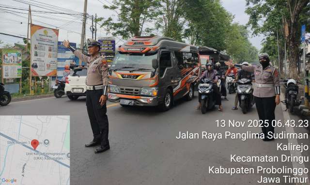 kegiatan poros pagi tidak hanya melakukan pengaturan arus lalu lintas, petugas juga membantu masyarakat yang hendak menyeberang jalan, sehingga tujuan keamanan dan keselamatan seluruh pengguna jalan baik pejalan kaki maupun pengendara kendaraan bermotor dapat merasa aman karena jalur Pantura probolinggo banyuwangi di saat jam sibuk pagi. sangat padat lakulintas .