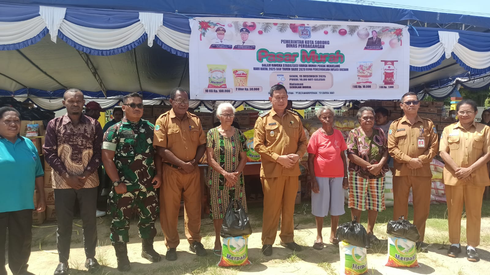 KOTA SORONG PBD, BUSERJATIM.COM GROUP – Pemerintah Kota Sorong melalui Dinas Perdagangan kembali menunjukkan komitmennya dalam menjaga stabilitas harga dan membantu masyarakat menjelang Hari Raya Natal 25 Desember 2025 dan Tahun Baru 1 Januari 2026. Hal tersebut diwujudkan melalui pelaksanaan Pasar Murah, yang secara resmi dibuka oleh Wakil Wali Kota Sorong, Anshar Karim, mewakili Wali Kota Sorong Septinus Lobat, SH, M.PA, bertempat di Moria, Jalan Basuki Rahmat Kilometer 10, Kota Sorong, Senin (15/12/2025).
