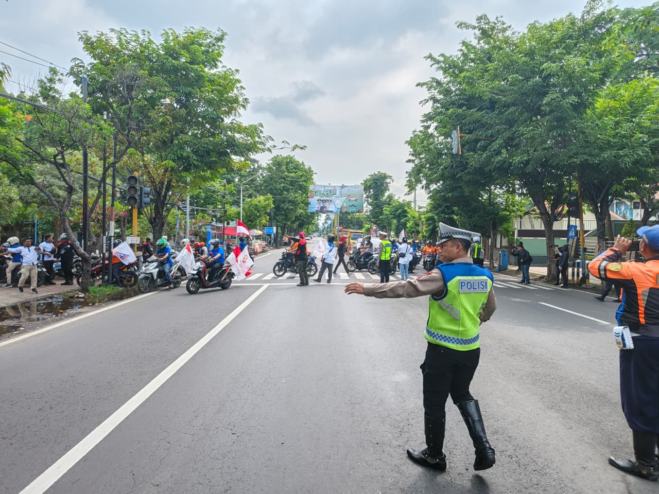 Personel lalu lintas diturunkan untuk melakukan pengaturan lalu lintas (Gatur Lalin). Hal ini demi memberikan rasa aman kepada pengguna jalan yang melintas, serta mendukung jalannya aksi agar tetap berlangsung Tertib.