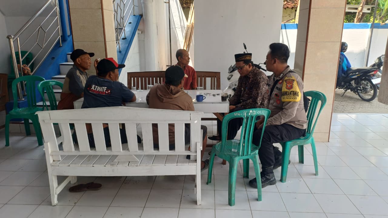 Bhabinkamtibmas Polsek Pasekan, Bripka Rudy Salam K, melaksanakan koordinasi dan dialog bersama pihak-pihak terkait di Desa Karanganyar, Kecamatan Pasekan, Kabupaten Indramayu, Jumat (19/12/2025).
