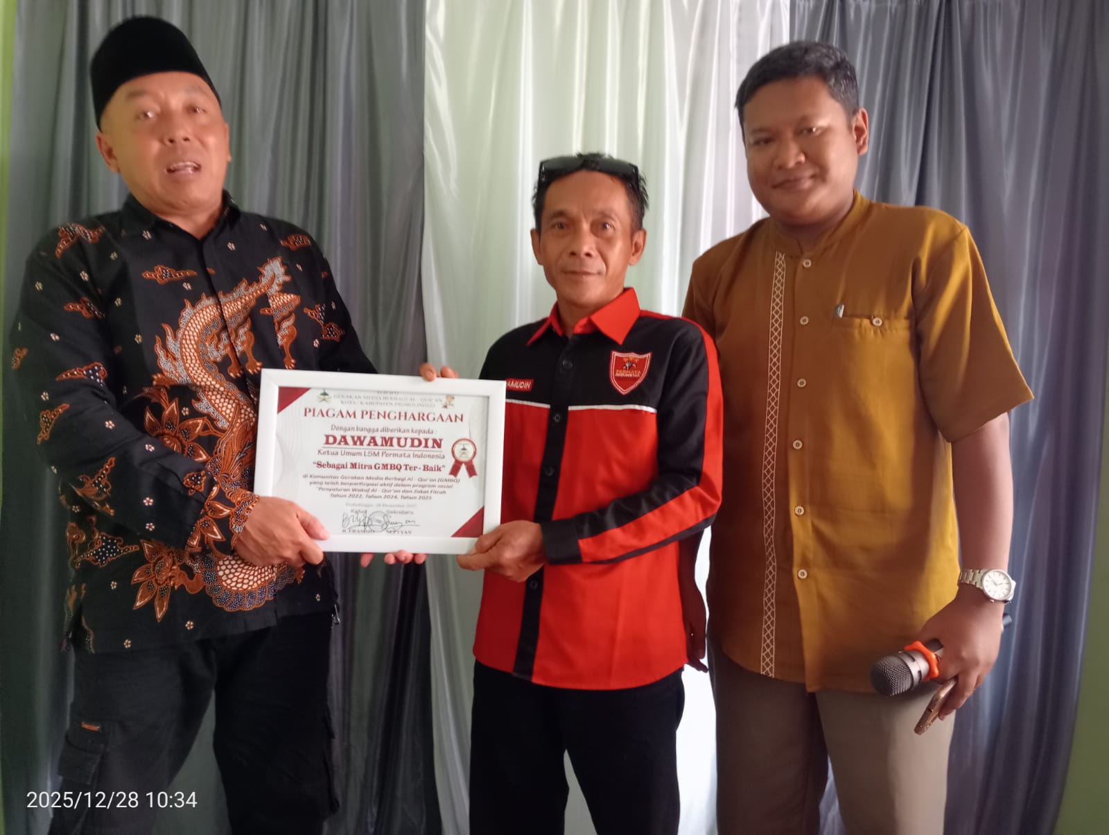 Di Kategori Mitra GMBQ Ter – Baik Piagam Penghargaan diberikan ke Dawamudin Ketua Umum LSM Permata Indonesia sebagai Mitra GMBQ Ter-baik atas dedikasi dan kontribusi aktif sebagai mitra, berdedikasi, mempunyai loyalitas yang tinggi, serta memiliki rasa semangat membara tiada henti.
