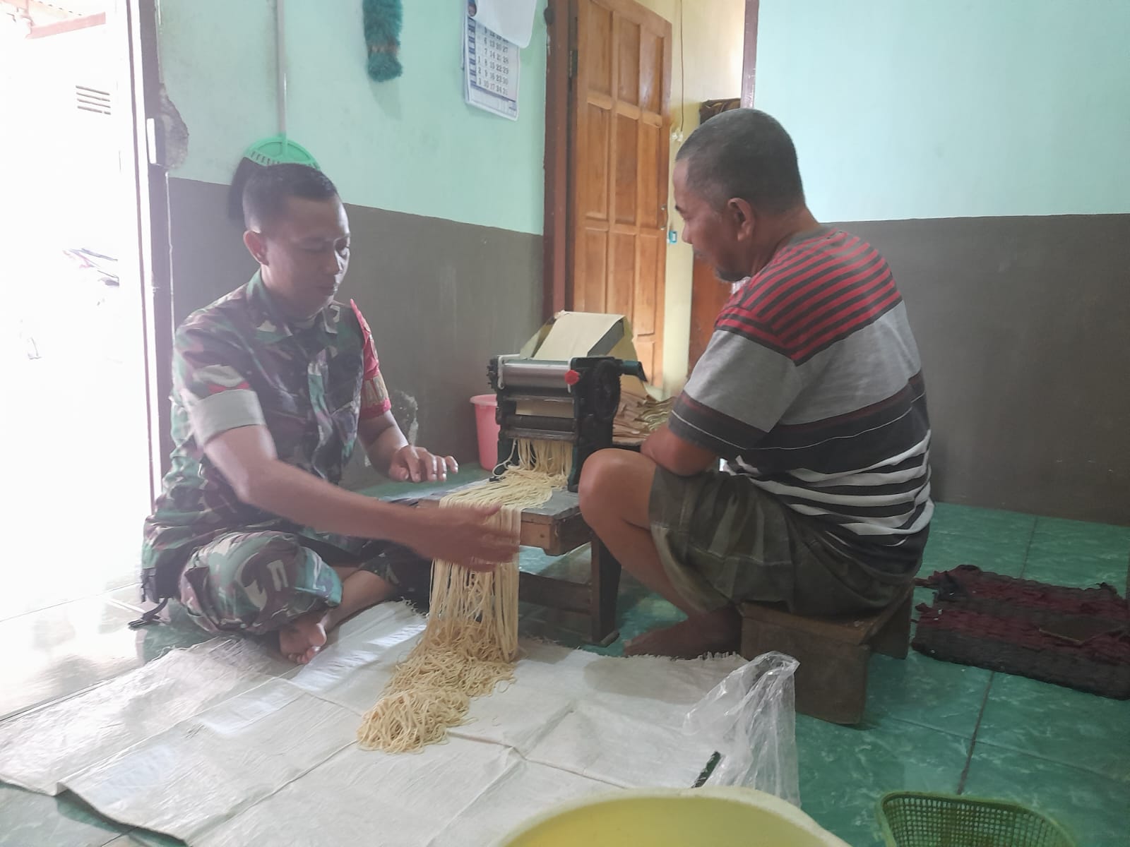 Dimana kegiatan yang dilaksanakan Babinsa menyasar kepada UMKM pembuatan Mie basah milik Bapak bambang warga Desa Gempol Kec Karangjati, Rabu (31/12/2025).