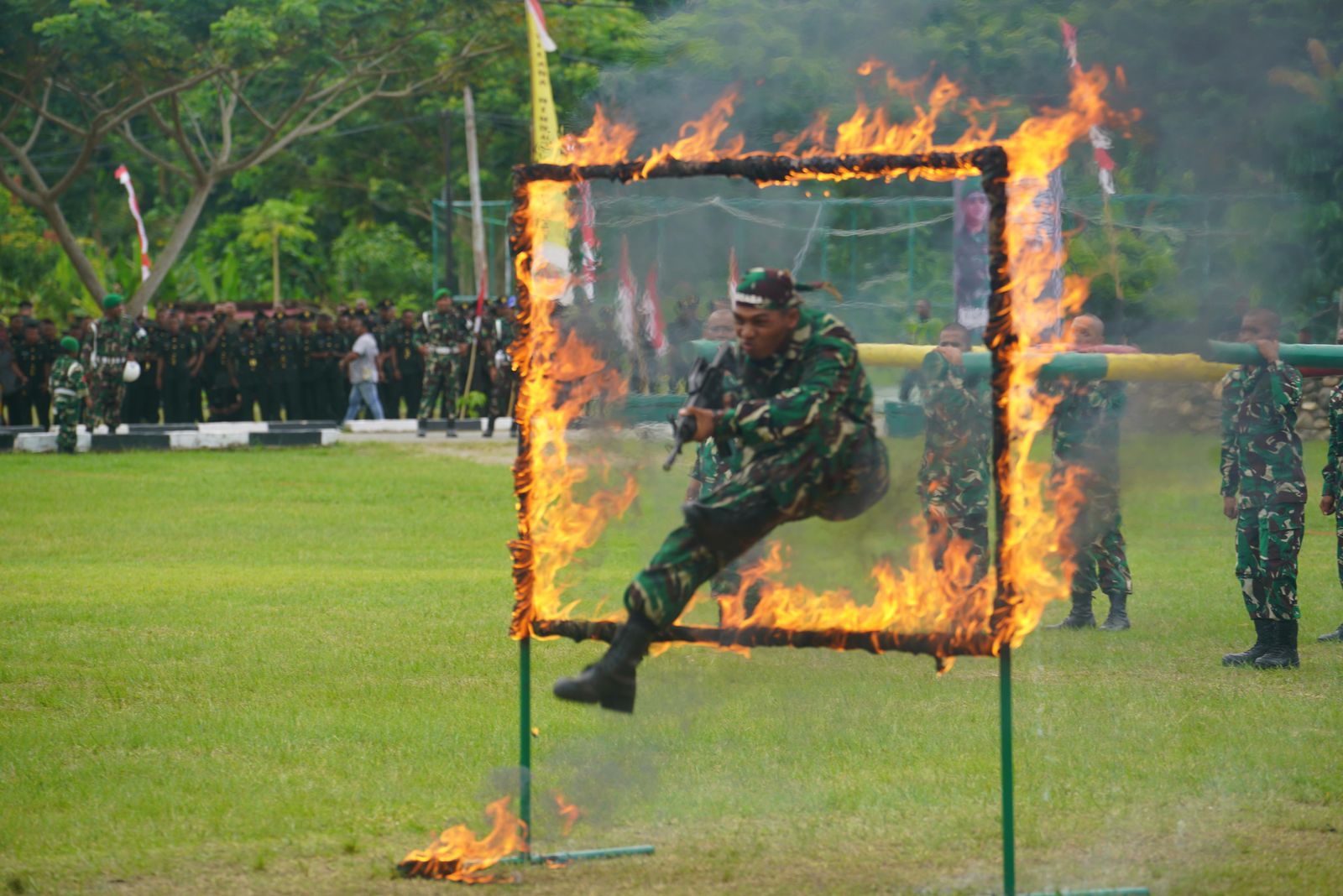 Rangkaian kegiatan penutupan pendidikan di warnai dengan demonstrasi siswa Dikmaba Infanteri berupa Taktik Regu Senapan, pematahan balok, dan simulasi halang rintang. Serta penampilan tarian khas Papua oleh para prajurit yang telah dilantik menjadi Sersan Dua sebagai wujud kecintaan terhadap budaya lokal serta kebersamaan TNI dengan masyarakat Papua.
