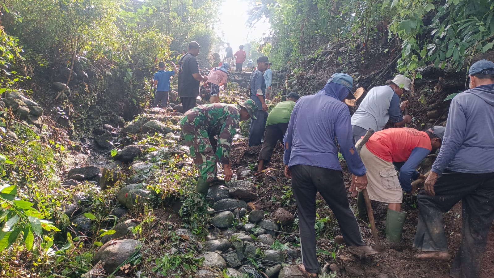 Pelda Warsito menyampaikan bahwa keikutsertaan Babinsa dalam kegiatan kerja bakti merupakan bentuk dukungan TNI terhadap pembangunan desa serta wujud kemanunggalan TNI dengan rakyat.