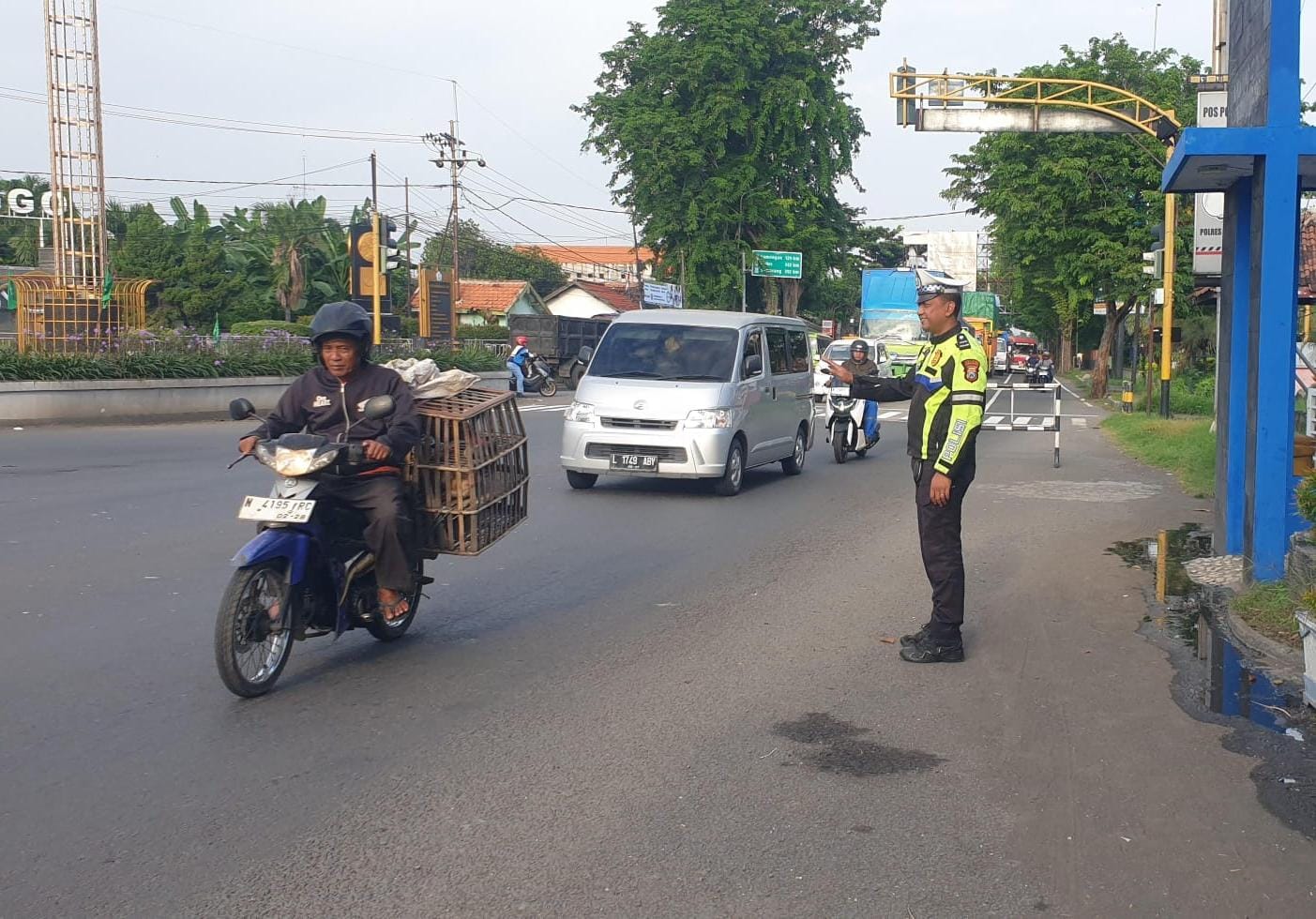 anggota satlantas melakukan penertiban. Rutinitas pengaturan arus lalu lintas (lalin) di wilayah hukum Polres Problinggo kota selalu diterapkan setiap harinya. Sebagai bentuk penyegaran terhadap petugas yang mengatur arus lalu lintas. , setiap pagi Di lokasi tugas masing masing