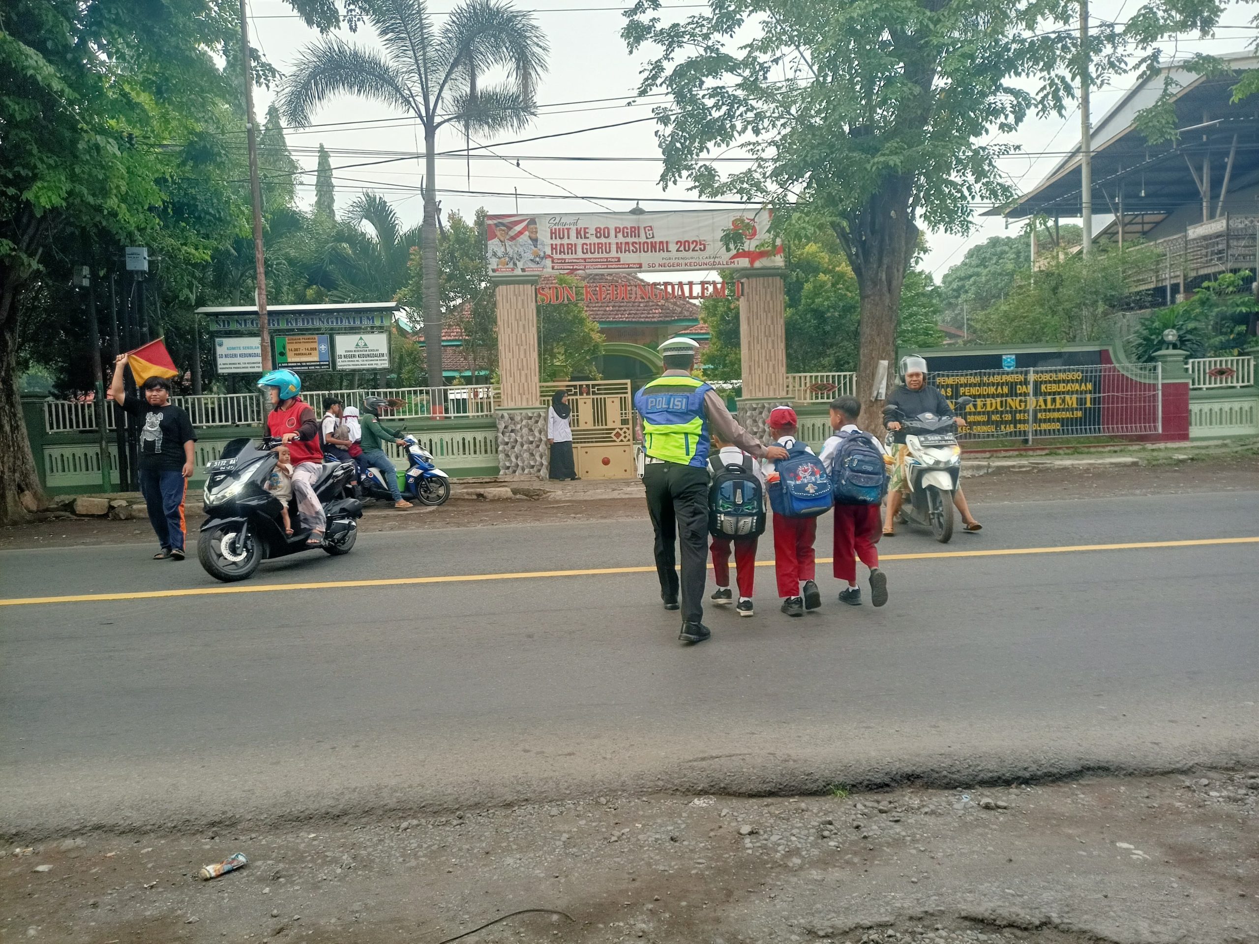 Poros Pagi Satlantas Polres Probolinggo Bantu Pelajar dan Masyarakat