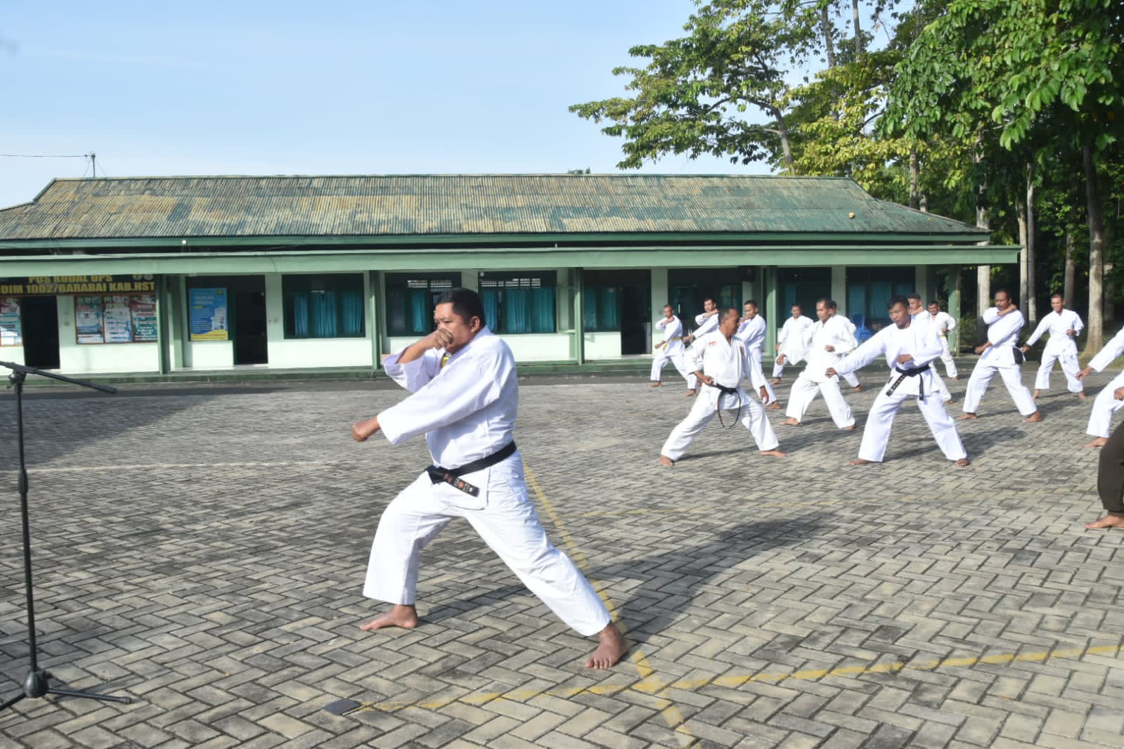Kegiatan latihan diawali dengan pemanasan, dilanjutkan dengan latihan teknik dasar karate, seperti kuda-kuda, pukulan, tangkisan, serta gerakan kombinasi yang dipandu oleh instruktur. Seluruh personel mengikuti latihan dengan penuh semangat dan disiplin, serta tetap mengutamakan faktor keamanan selama kegiatan berlangsung.