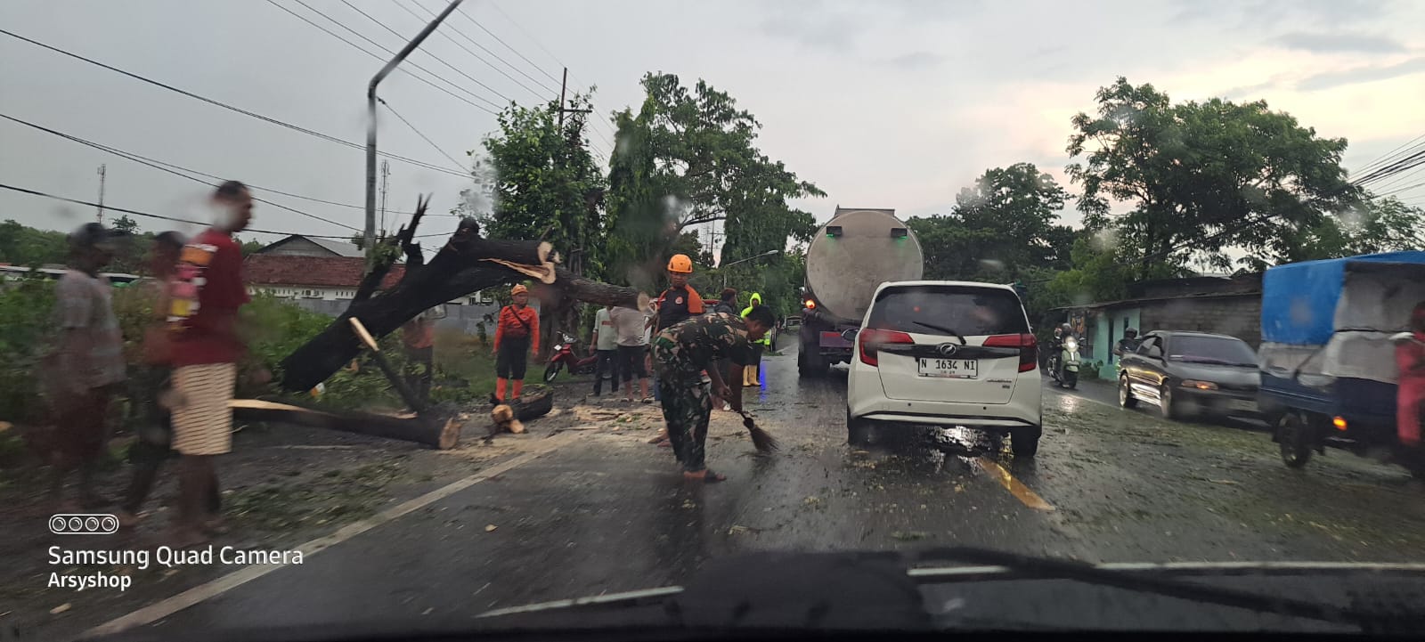 Selain di jalur utama, penanganan juga dilakukan di kawasan permukiman warga. Pohon tumbang dilaporkan terjadi di Dusun Parsean dan depan Rumah Makan J’Bing Desa Tamansari serta beberapa titik di wilayah Jabung dan Paiton.