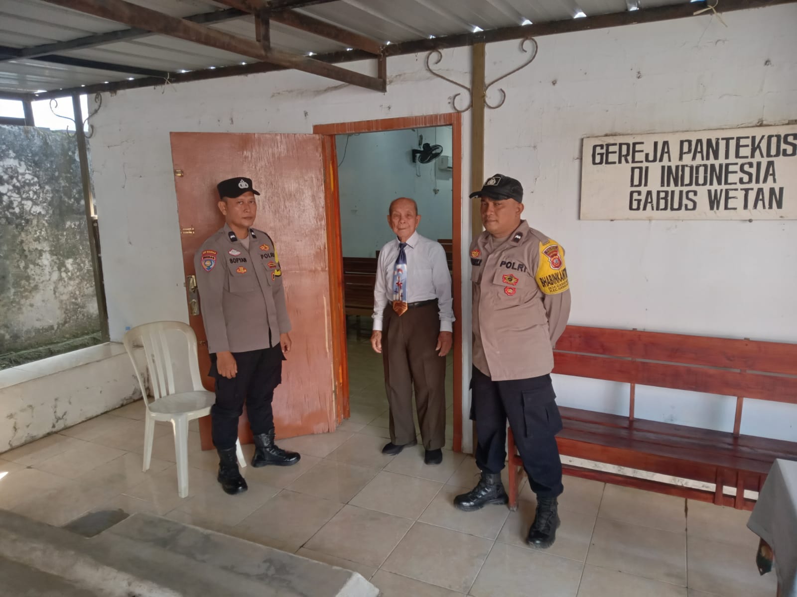 Dalam giat tersebut, personel Polsek Gabuswetan yang bertugas, yakni Aiptu Hery Rusjana dan Aipda M. Sofyan, SH, melakukan penyisiran dan sterilisasi di area sekitar gereja sebelum kegiatan dimulai.