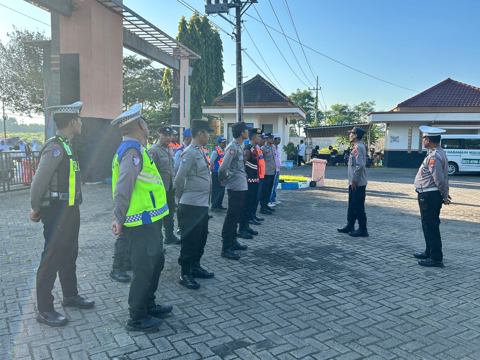 Kegiatan apel ini dipimpin oleh perwira pengendali dengan melibatkan personel Satlantas yang disiagakan untuk mengatur arus lalu lintas serta memberikan pelayanan kepada masyarakat dan peserta manasik haji. Pengamanan dilakukan guna mengantisipasi peningkatan volume kendaraan serta memastikan kegiatan berjalan tertib, aman, dan lancar.