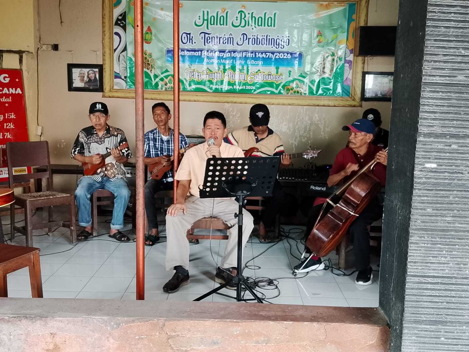 Otoritas.id | Probolinggo – Komunitas Orkes “Keroncong Tentrem” menggelar Halal bi Halal di Area Hotel Tentrem, Jalan Raya Panglima Sudirman No. 15, Kelurahan Tisnonegaran, Kecamatan Kanigaran, Kota Probolinggo, Rabu (8/4/2026). Acara ini dimeriahkan dengan alunan musik keroncong dan pop nostalgia yang membawa suasana meriah dan gembira.