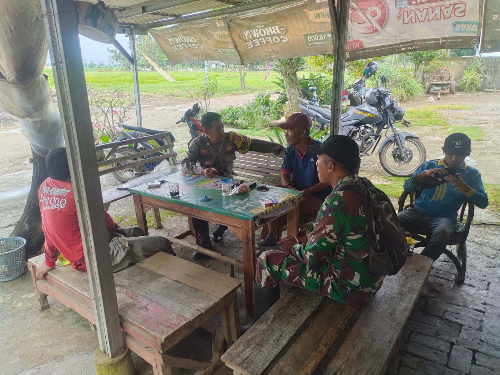 Kegiatan duduk bersama di salah satu tempat berkumpul warga ini bertujuan untuk menjalin silaturahmi sekaligus memantau perkembangan situasi Kamtibmas di tingkat desa secara langsung.