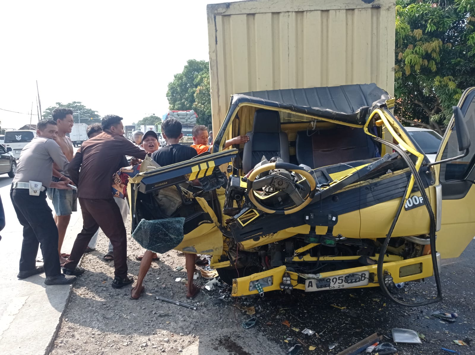 Peristiwa naas tersebut terjadi sekira pukul 08.50 WIB. Berdasarkan data yang dihimpun, kendaraan yang terlibat adalah Mitsubishi Colt Diesel Nopol K 9772 GP yang dikemudikan oleh Ali Mahfud (35), warga Demak, Jawa Tengah, serta truk box Nopol A 8958 B yang dikemudikan oleh Nurjaya Bin Pulung (54), warga Bekasi.