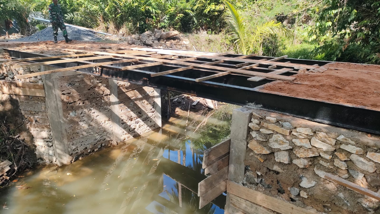Dengan panjang jembatan 15 meter dan konstruksi berbahan beton, pengerjaan saat ini difokuskan pada pemasangan besi gelagar sebagai rangka utama penopang jembatan. Selain itu, proses penimbunan pondasi juga terus dilakukan guna memastikan kekuatan dan kestabilan struktur sebelum memasuki tahap berikutnya. Seluruh tahapan dikerjakan secara bertahap dengan pengawasan ketat.
