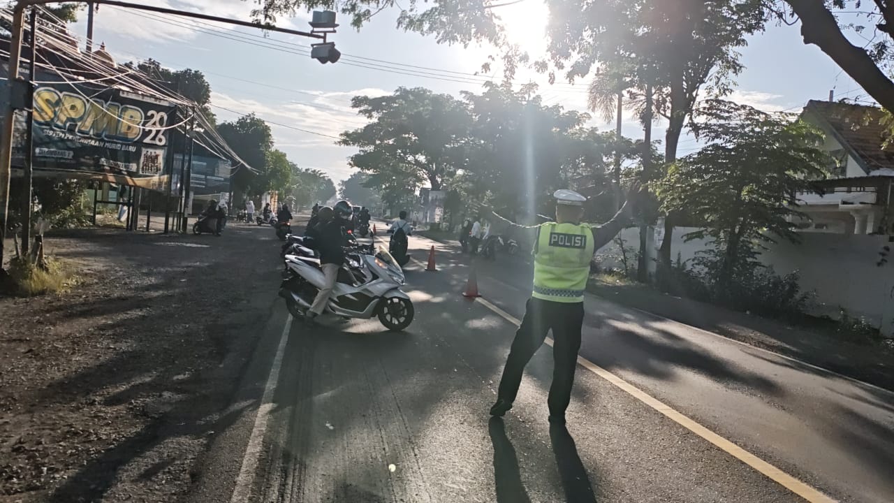 Probolinggo – Dalam rangka menjaga kelancaran arus lalu lintas serta memberikan rasa aman bagi masyarakat, Anggota Satuan Lalu Lintas (Satlantas) Polres Probolinggo melaksanakan kegiatan pengaturan lalu lintas di beberapa titik rawan pada pagi hari.