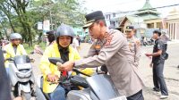 Polres Merangin Bagikan Bendera Merah Putih kepada Masyarakat Sambut HUT ke-80 RI