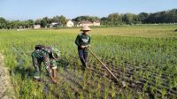 Babinsa Desa Banaran Bantu Petani Bersihkan Rumput di Lahan Sawah