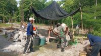 Perlancar Akses Warga, Babinsa Koramil 01/Ngawi Gelar Kerja Bakti Pembangunan Infrastruktur Desa