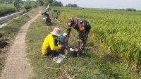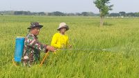 Basmi Hama, Babinsa Turun Langsung Bantu Petani Dalam Penyemprotan Padi